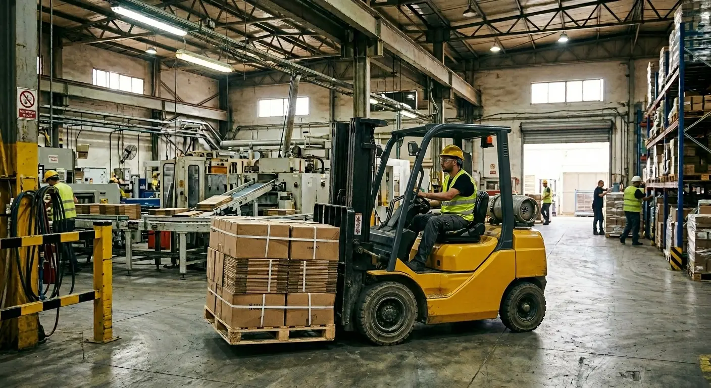 Forklifts collecting waste from production lines are equipped with weighing systems that allow the operator to select the waste type and destination directly from the cab interface. The system logs the collection event and reports it to the ERP in real time, without requiring a separate data entry step at a workstation.In a corrugated packaging facility, this approach is used to track scrap collection across multiple production lines, with each event reported automatically to the connected ERP system.
